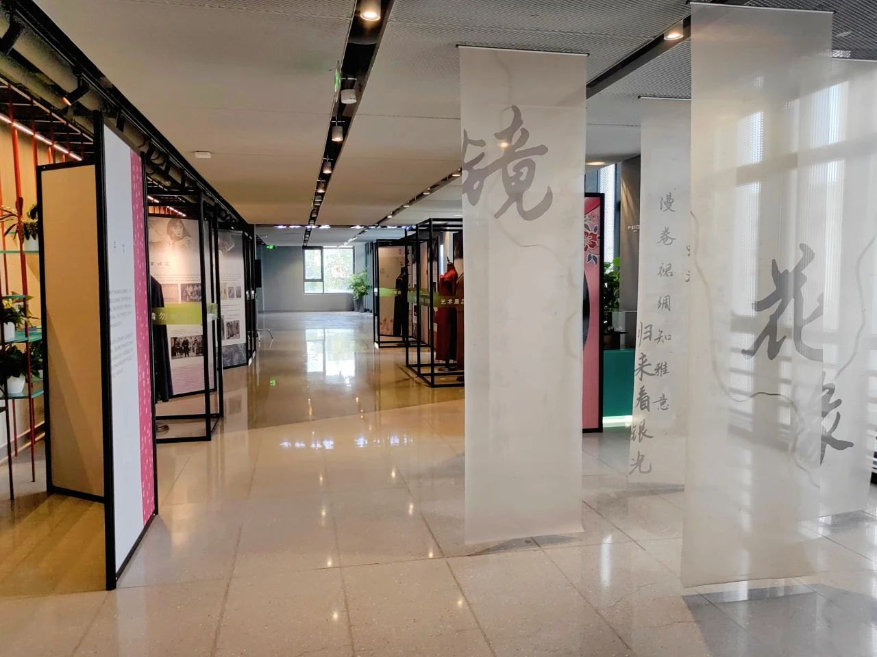 幔,使得后景若隐若现,营造出“曲径通幽”之感。其中三条分别写有“镜”