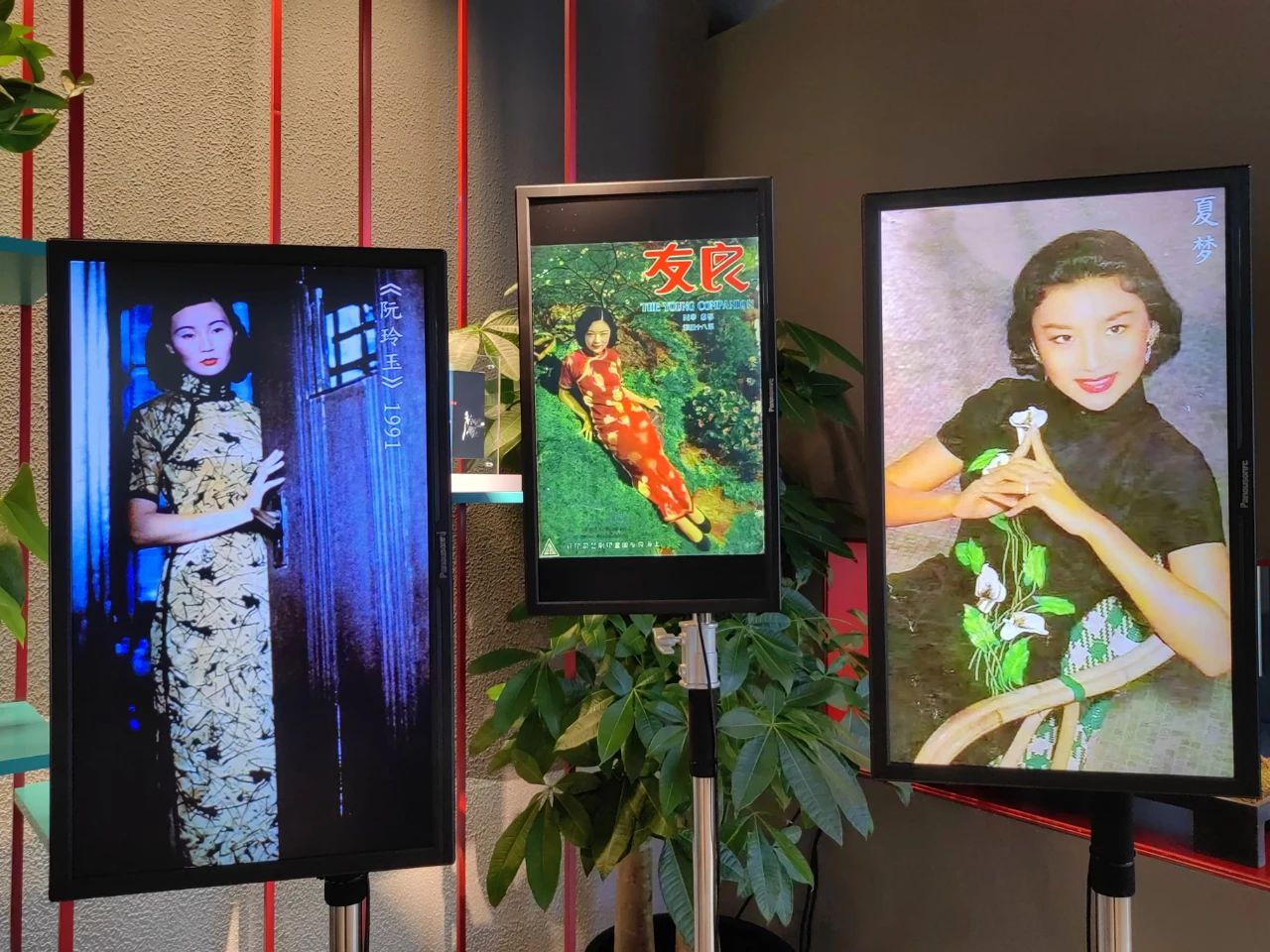 三台广告机轮播经典电影旗袍造型及《良友》杂志封面