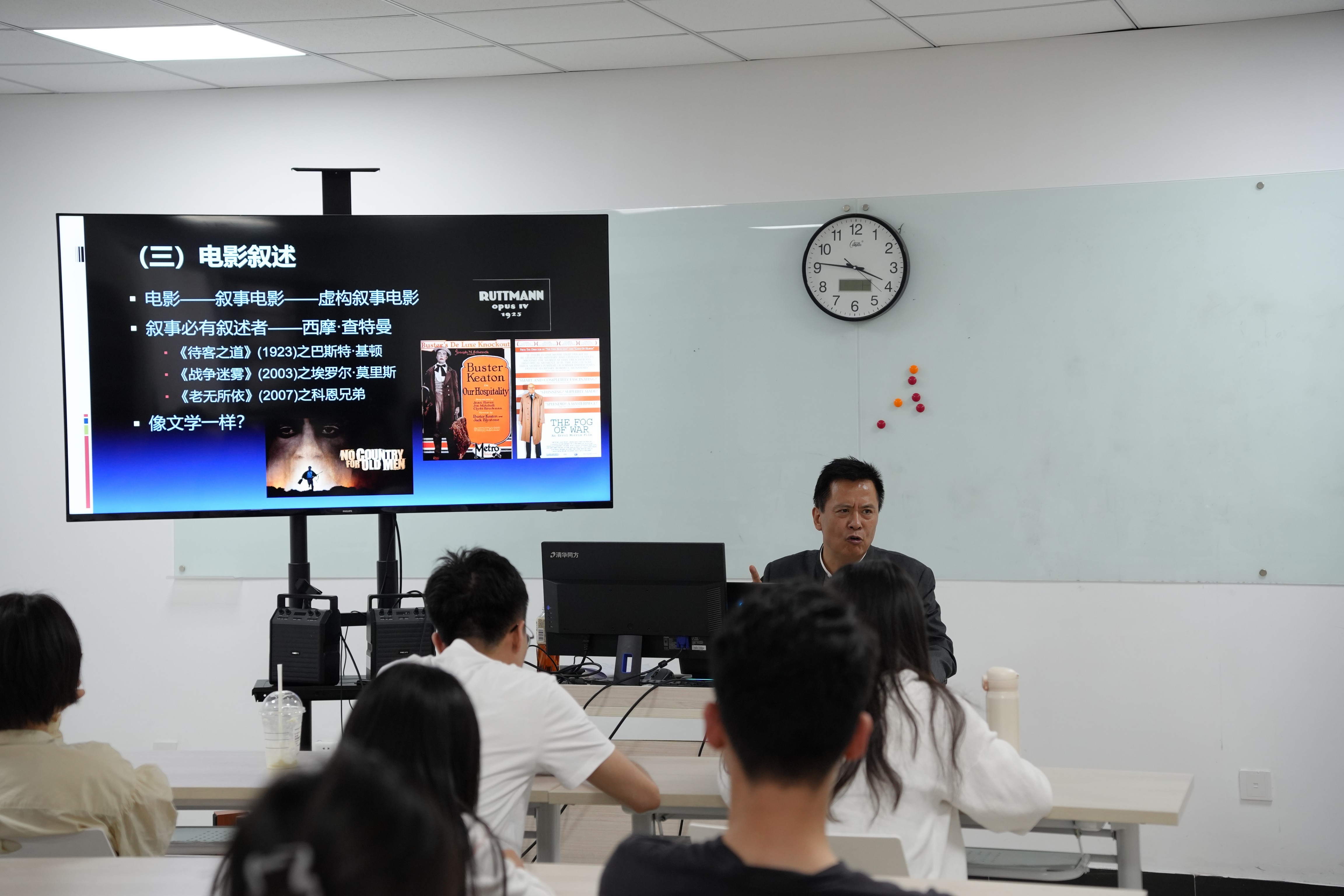 在讲座伊始,焦远超老师以“洞穴寓言”导入并阐释了电影与哲学的亲密关系,深入浅出地说明电影哲学这一理念的产生与学界的分歧。针对“电影是什么”这一话题,焦老师从媒介特异性出发,重读经典电影理论,援引并解读了斯坦利·卡维尔、阿瑟·丹托等人相关的电影哲学观点,反思了对于电影本质定义的追求,为同学们了解相关理念的演进、发展和未来走向提供了极富逻辑性和建设性的脉络。