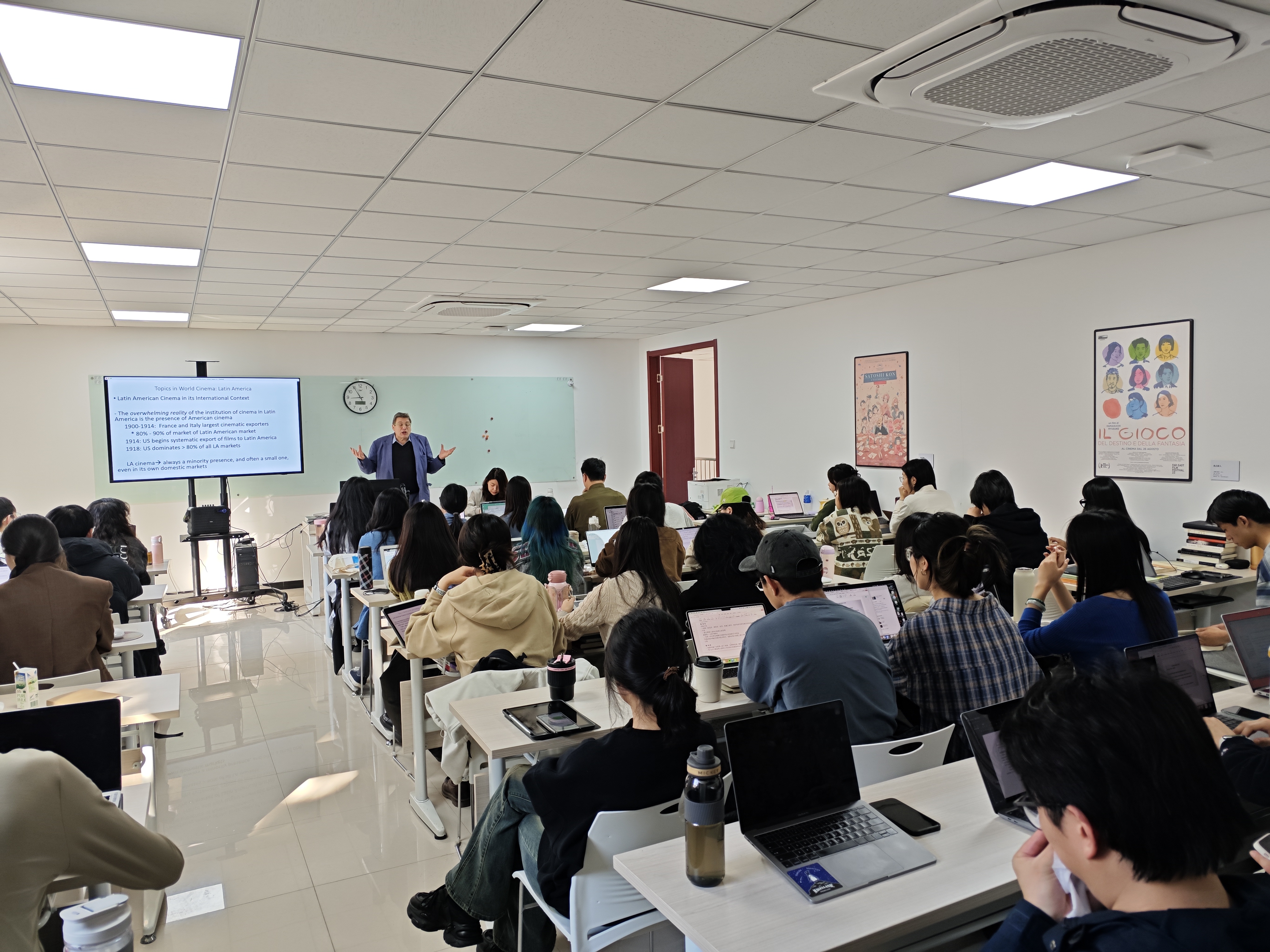 《拉丁美洲电影专题研究》系列课程为期五周,理查德·培尼亚教授围绕“转型期的新现实主义和拉丁美洲电影”、“巴西新电影和现实主义美学的界限”、“古巴:新社会的新电影”、“数字时代的拉丁美洲电影”和“全球化的新拉丁美洲电影”五个主题为同学进行讲授。